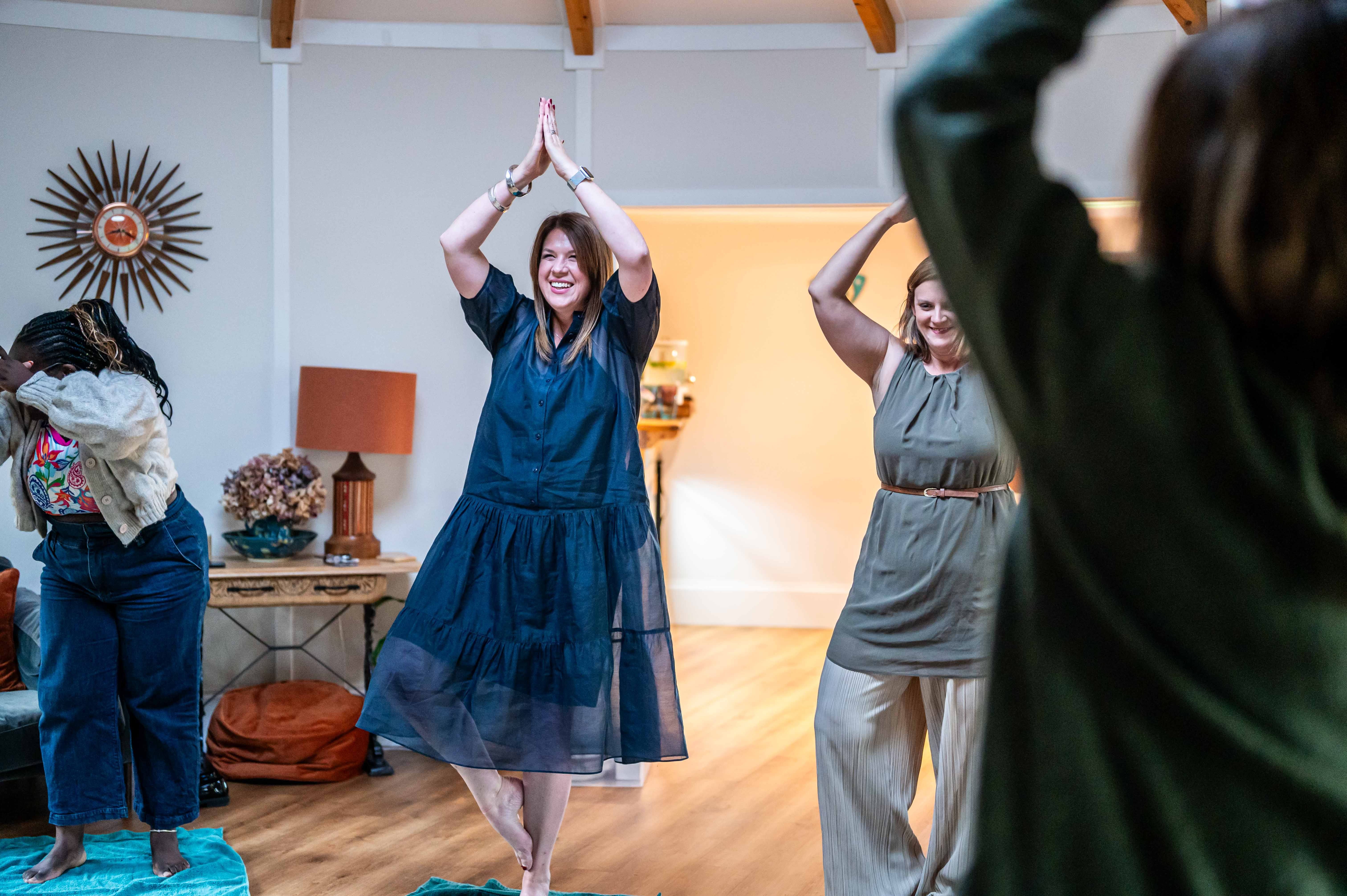 This particular supper club was held at The Roundhouse Haven, not for from Market Harborough. My great friend and client; Karen Edwards booked all the seats, which meant I hadn’t the stress of selling tickets - a godsend! Here we see my lovely Karen engaged in a little pre-food yoga session.